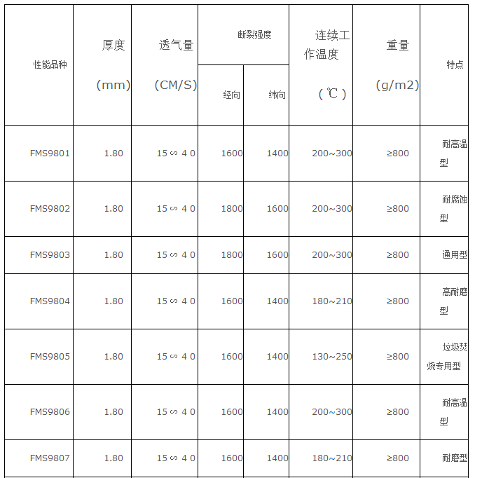 氟美斯除塵布袋在玻纖針刺氈的基礎(chǔ)上添加P84纖維,使氈層更加緊密,纖維之間的纏繞增強(qiáng),可以應(yīng)對更高的過濾風(fēng)速。氟美斯除塵布袋廣泛應(yīng)用于鋼鐵有色金屬、化工、炭黑、建材、電力部門。是高效的耐高溫、耐腐蝕、耐酸堿、耐折耐磨復(fù)合型產(chǎn)品。氟美斯是為高爐煤氣干法除塵研制成功的一種新型高溫濾料。氟美斯除塵布袋在玻纖針刺氈的基礎(chǔ)上添加P84纖維,使氈層更加緊密,纖維之間的纏繞增強(qiáng),可以應(yīng)對更高的過濾風(fēng)速。P84纖維呈三葉型截面,從而形成很高的表面積 系數(shù),增大了捕塵機(jī)率,而且該纖維特殊的截面形態(tài),使粉塵大多數(shù)被集中到濾料表面,較難滲透到濾料內(nèi)部堵塞空隙,降低運行阻力從而提高了過濾風(fēng)速。